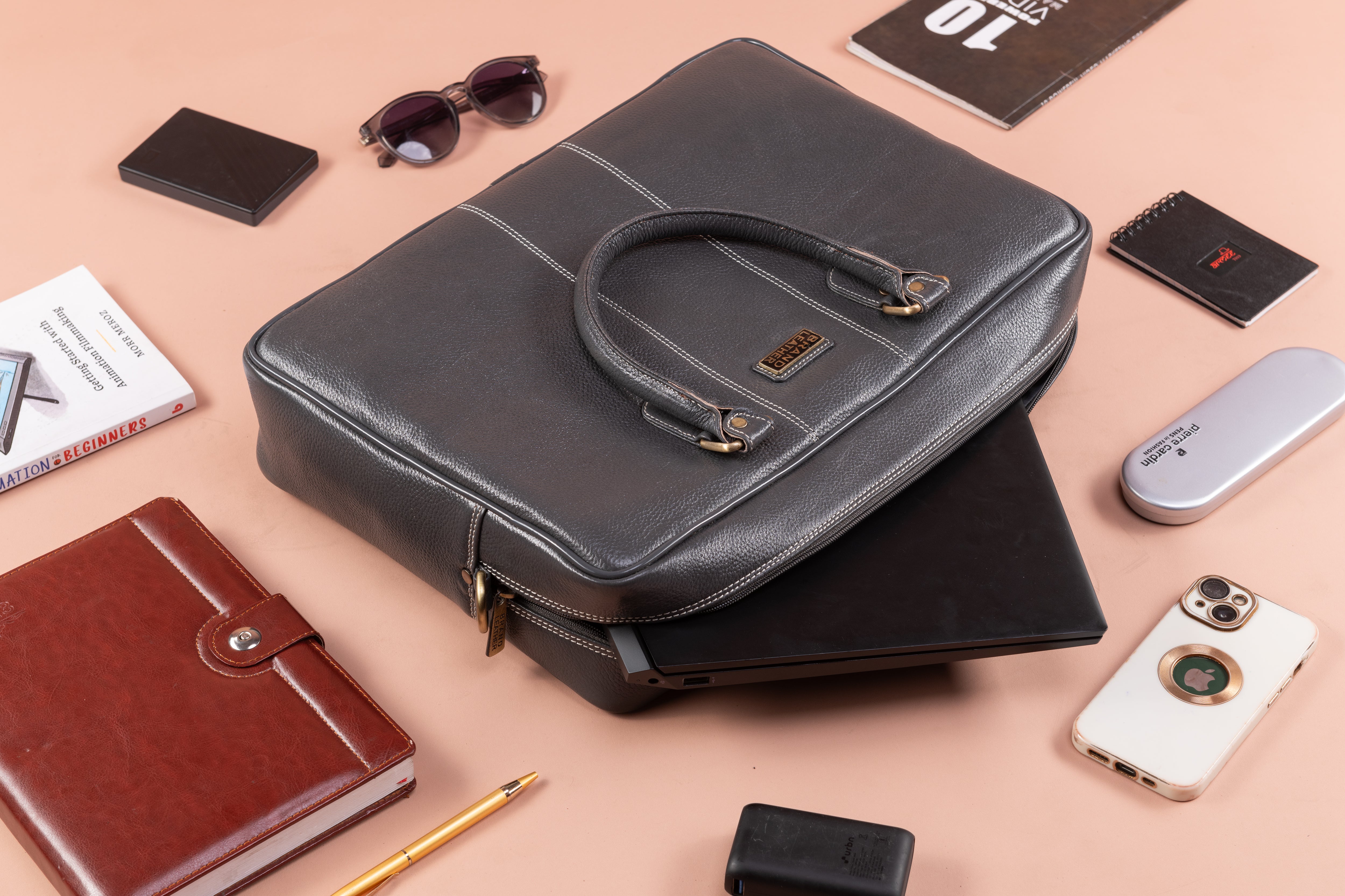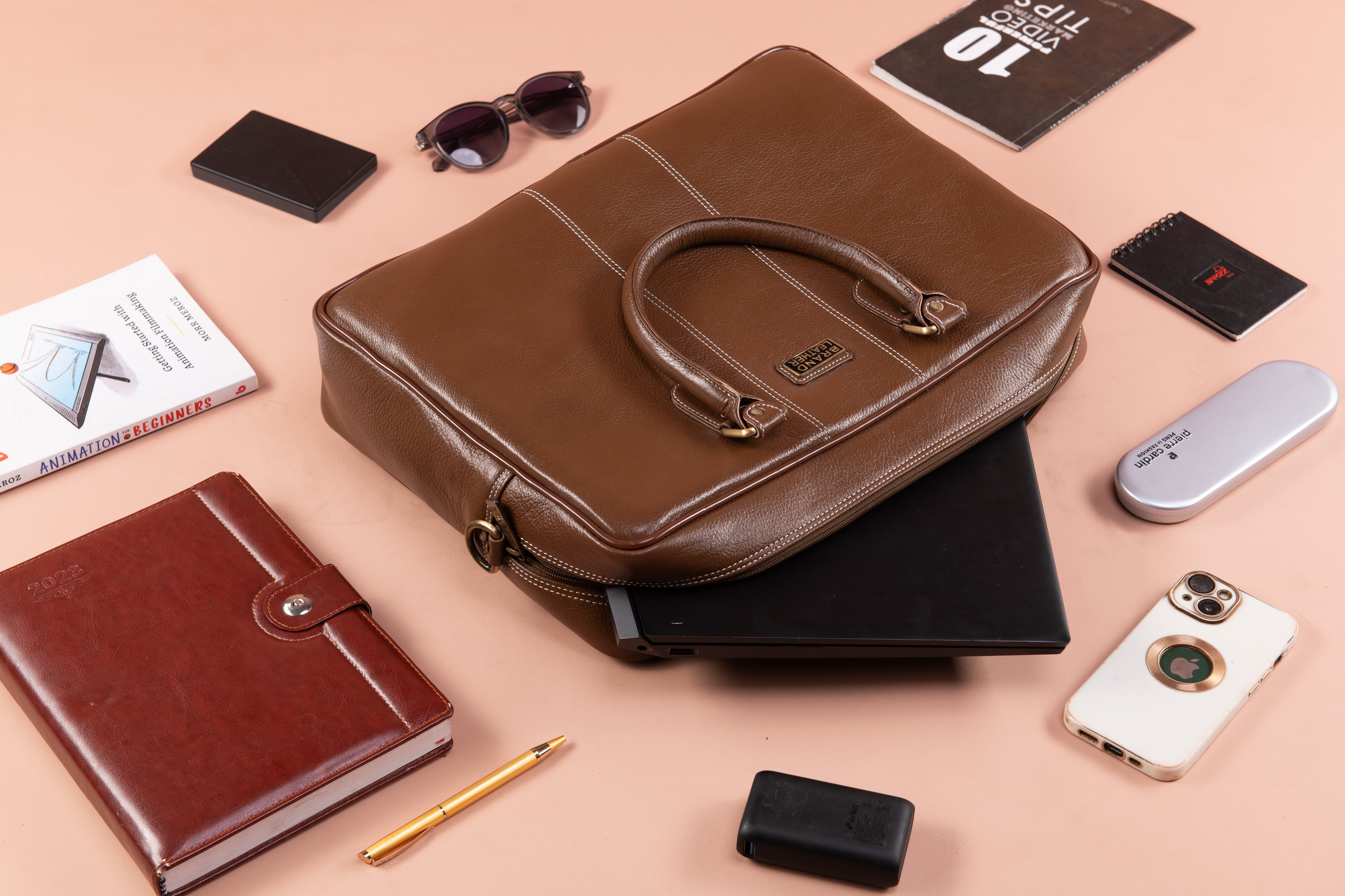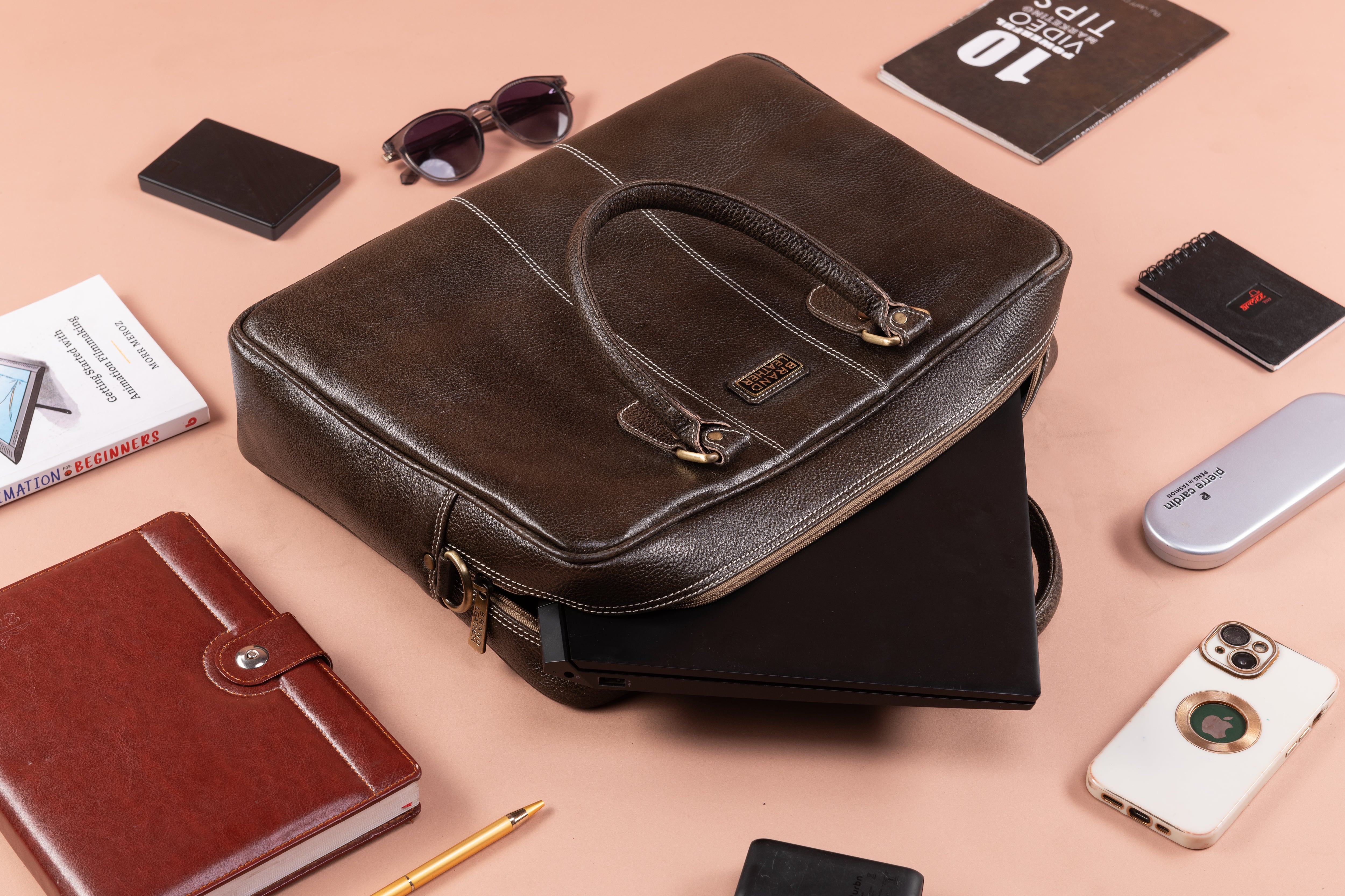 BRAND LEATHER Laptop Bag for Men - Genuine Leather Office Bag with Multiple Compartments Fits 14/15.6/16 Inch Laptop Bag - Messenger and Shoulder Bag for Travel - Water Resistant